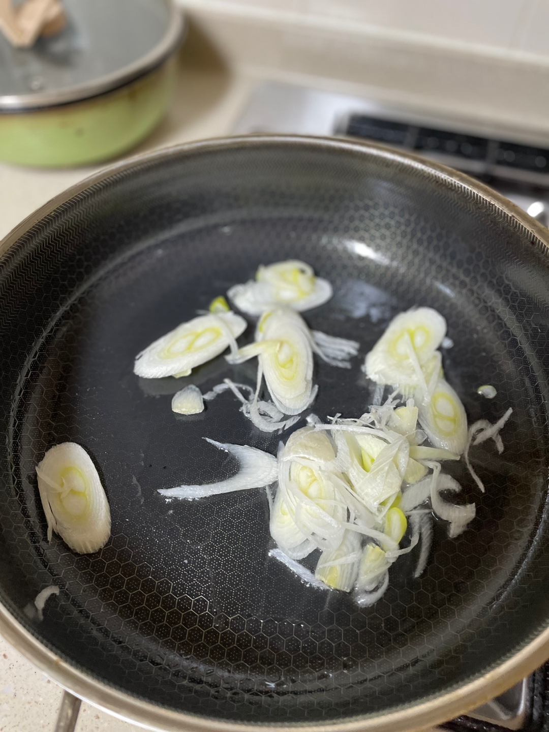 팬에 기름을 두르고 파를 넣고 약한 불에 파기름을 살짝 내어줍니다. 요리 1도 못하는 요알못 여자가 파기름을 내는 거는 반찬을 할 때마다 하는데요 다진 마늘이 있을 때는 다진 마늘을 넣고 약한 불에 볶아주기도 합니다. 이유는 단 하나, 맛있으니까 그냥 파기름이나 마늘기름이 난 상태에서 볶음류 반찬을 하면 더 맛있더라고요 ㅋㅋㅋ