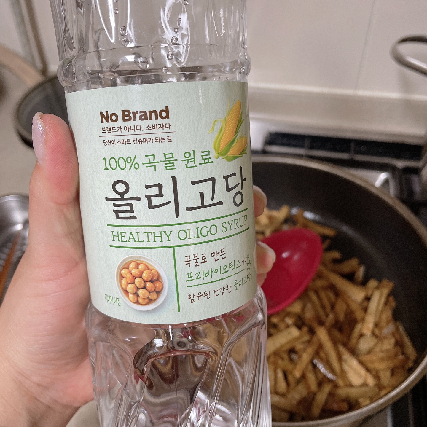 간장을 넣고 간을 맞춘 다음에는 올리고당을 넣어 어묵에 윤기를 살려줬어요~ 올리고당을 넣지 않으면 어묵볶음이 식고 나면 윤기가 사라지더라고요~ 올리고당을 좀 넣고 볶으면 살짝 단맛도 첨가되면서 윤기도 좌르르 흐르니 어묵볶음에는 올리고당을 넣어주는 게 좋더라고요~ 저는 어묵 3 봉지로 대용량을 볶아서 한국자 넣어줬어요!!