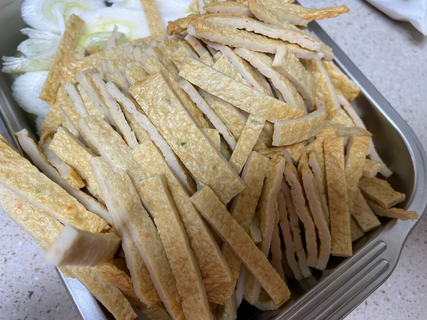 일단 배송받은 사각어묵을 날짜 보고임박한 거부터 뜯었어요! 보통 정사각형으로 자르는데... 저는 젓가락질 하기 편하도록 가운데 반을 잘라 길쭉하게 썰어 주었답니다. 이렇게 어묵을 잘라주면 젓가락질하기가아주 편하더라고요!!~~ 평소 어묵을 더 얇게 채 썰듯이 하는데 이날은 포스팅하느라 사진 찍느라 ㅋㅋ 왜 아무 생각 없이 이상한 모양이 나왔는지~~~ㅋㅋㅋ 담에는 이쁘게 할게요!!